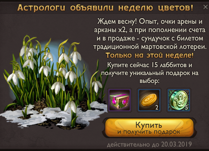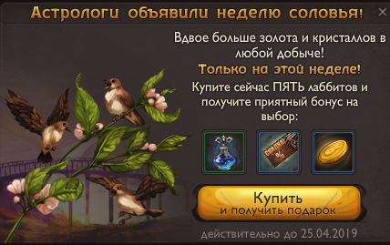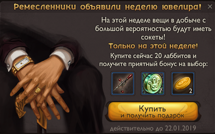 Обратите внимание, что эта неделя экспериментальная: при пополнении счета всего на 5 Лаббитов можно выбрать весьма достойный подарок. Кроме того, в игру внесены изменения, которые должны предотвратить ситуации, когда выбранный подарок изредка мог не прийти игроку по почте. Также теперь если неделя закончится, а новая еще не начнется - будет активно предложение прошедшей недели.