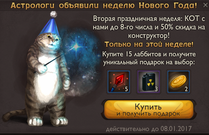 Вторая новогодняя неделя продлится до 8-го января. КОТ все еще с нами, и если вам не хватило пары зайцев до ачивы - вы можете купить у него мешок!