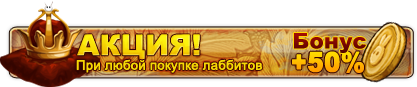 А в мире Утраченной магии вновь наступает Золотая лихорадка! Всю неделю вы будете получать до +50% лаббитов в подарок при каждом пополнении счета! Но на этот раз у вас есть шанс получить ещё больше, потому что топ-20 игроков, купивших наибольшее количество лаббитов во время акции, получат в подарок +20% от общей суммы приобретенного!